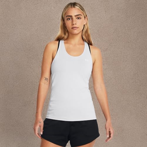 Under Armour Women's HeatGear Racer Tank T-Shirt, (014) Halo Gray / / White, XL