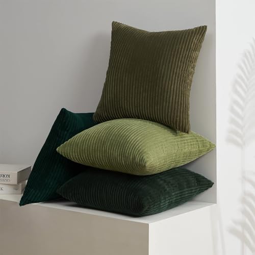 Topfinel Square Cushion Covers 50x50cm Corduroy Scatter Decorative Garden Sofa Cushion Covers 20x20 inch Large Green Cushions for Livingroom Soft Pillow Cases for Bed Room Set of 4