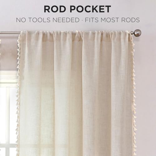 Joydeco Linen Boho Curtains 96 Inches Long 2 Panels, Super Soft Bohemian Farmhouse Curtains with Tassels, Semi Sheer Light Filtering Drapes for Bedroom Living Room (Rod Pocket, 52Wx96L)