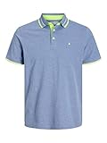 Jack & Jones Jjepaulos Men's Fit Polo Shirt Plain Summer Shirt Short Sleeve Pique Cotton Big Size, Bright Cobalt/Detail: Neon, 6xl