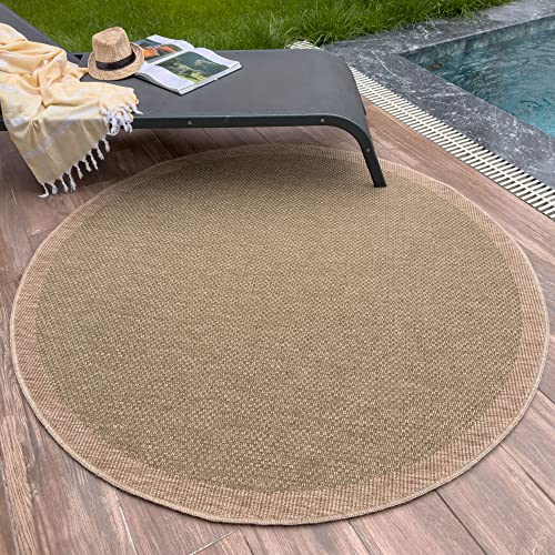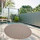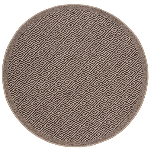 THE RUGS Nature Collection Outdoor Rug – Indoor/Outdoor Tona Border Area Rug for Patio, Deck, Garden, Kitchen, Bathroom or Living Room (Greek Key-Dark Grey, 160 cm Round)