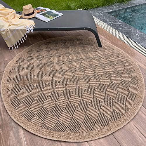 THE RUGS Jute Looking Square Dots Design Outdoor Rugs in Blue for Garden Patio Nature 5200B | Size: 160cm diameter