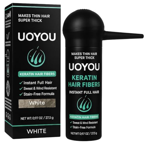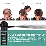 UOYOU Hair Fibres BLACK 27.5g with Pump Applicator – Natural Keratin Hair Building Fibers for Thinning Hair – Undetectable, Sweat- & Wind-Resistant Concealer for Men & Women