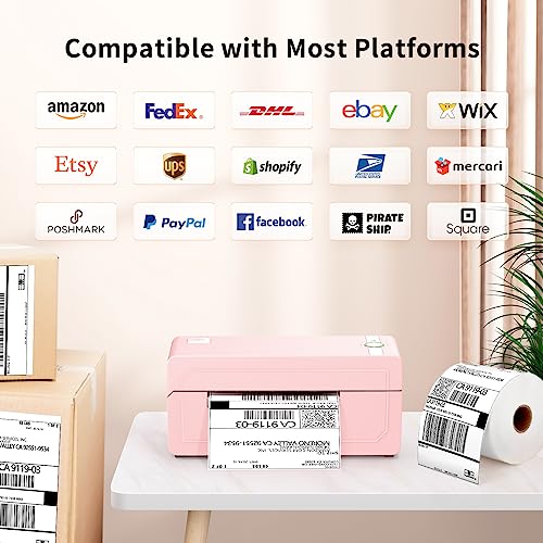 JADENS Bluetooth Thermal Label Printer 4x6, Pink Wireless Shipping Label Printer for Small Business & Packages, Compatible with iOS, Android, Mac, Windows, Amazon, Etsy, Ebay, Shopify