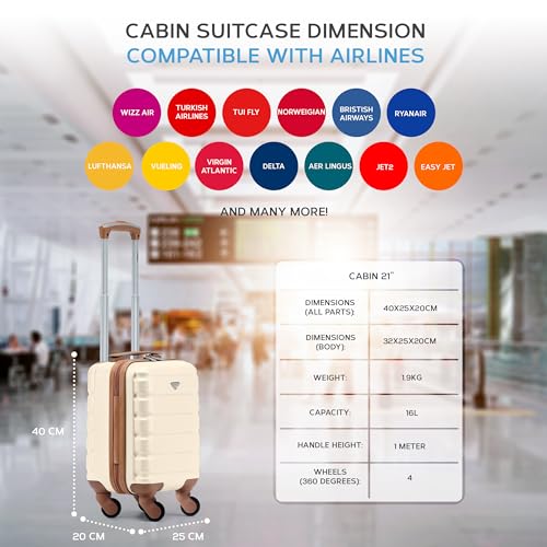 Flight Knight 40x20x25cm Ryanair Free Underseat Cabin Carryon Suitcase 100+ Airlines in Cream Cream Cabin