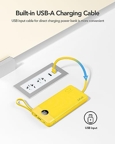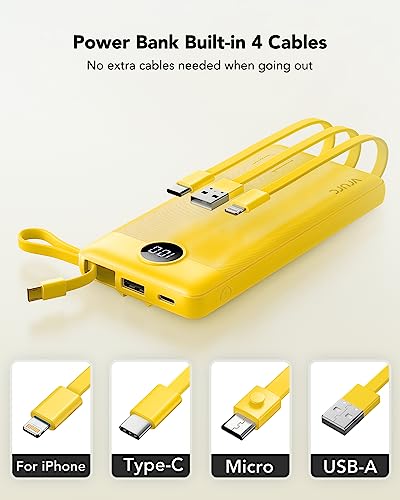 VRURC 10000mAh Power Bank With Built in Cables,USB C Battery Pack Portable Charger with 5 Outputs 2 Inputs Powerbank LED Display compatible with iPhone 14 13 12 Samsung S21 S20 Xiaomi iPad