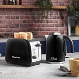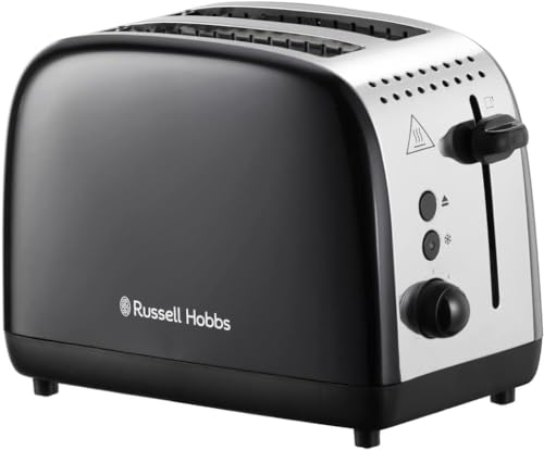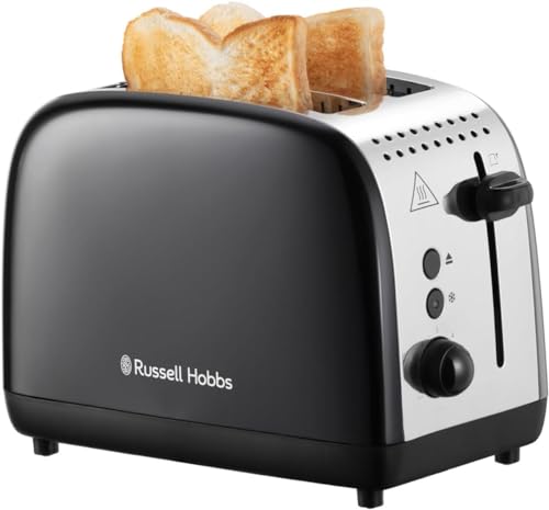 Russell Hobbs 2 Slice Lift & Look Toaster (Longer slots, 6 Browning levels, Defrost/Reheat/Cancel function, Removable Crumb Tray, 1670W, Black & Stainless Steel Gloss finish) 26550