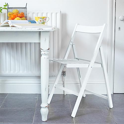 Harbour Housewares Beech Wood Folding Chairs - White - 6x - Wooden Garden Chair Outdoor Seating Deck Seats Lightweight Foldable Dining Patio Furniture
