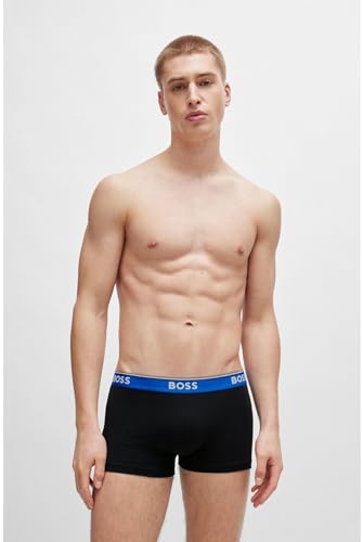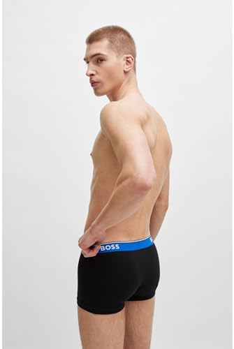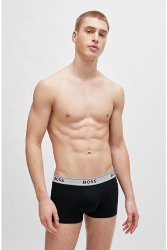 BOSS Mens Trunk 3P Power Three-Pack of Logo-Waistband Trunks in Stretch Cotton