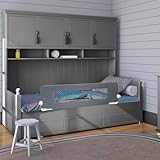 Safetots Deluxe Soft Touch Denim Extra Wide Bed Rail, Grey 140cm Wide x 50cm Tall, Toddler Bed Guard For Safety, Secure Child Bed Rail