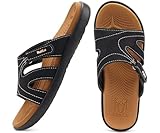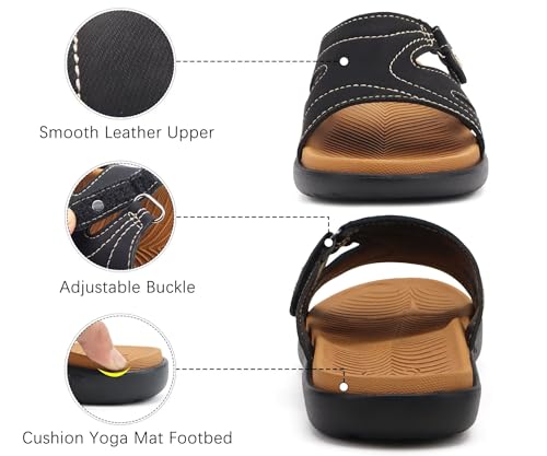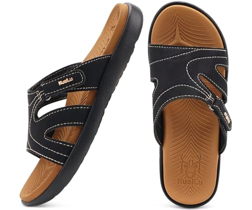 KuaiLu Womens Fashion Orthotic Sliders Ladies Lightweight Athletic Yoga Mat Sandals Slip on Thick Cushion Slippers Sandals with Comfortable Plantar Fasciitis Arch Support KhakiBlack 5.5