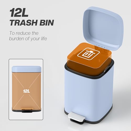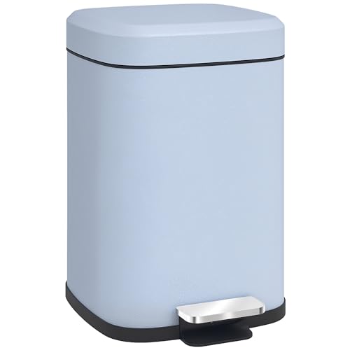 HOMCOM 12L Kitchen Pedal Bin, Metal Rubbish Bin with Soft-close Lid, Light Blue Size: Small Light Blue Small
