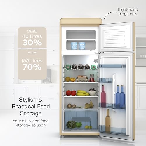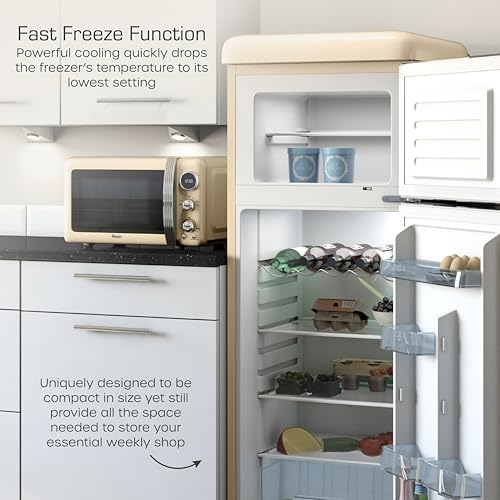 SWAN SR11010CNE Retro Free Standing Top Mounted 70/30 Split Fridge Freezer with Energy Class E, 3 Adjustable Shelves, Fast Freeze, Cream