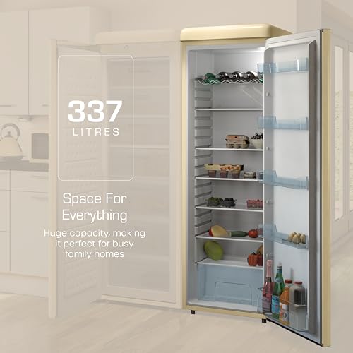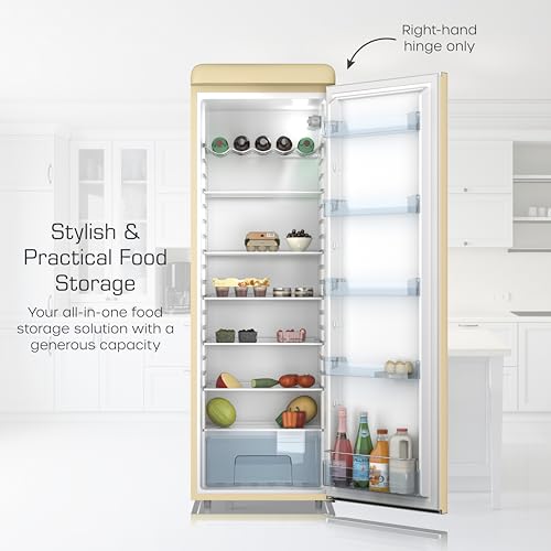 SWAN SR11050CNE Retro Tall Larder Fridge with 337L Capacity, 5 Glass Fridge Shelves, 1 Chrome Wine Rack, 6 Door Shelves, 1 Salad Crisper, Energy Class E, Cream