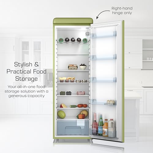 SWAN SR11050GNE Retro Tall Larder Fridge with 337L Capacity, 5 Glass Fridge Shelves, 1 Chrome Wine Rack, 6 Door Shelves, 1 Salad Crisper, Energy Class E, Green