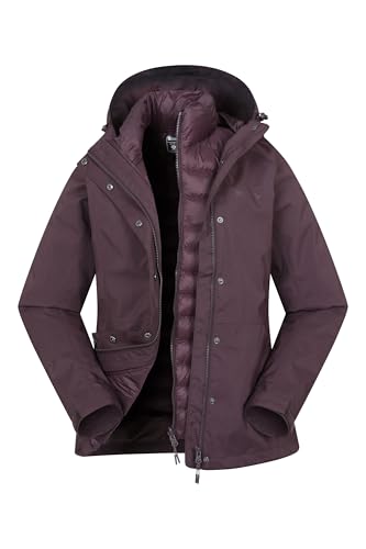 Mountain Warehouse Alaskan Womens 3 in 1 Short Jacket - IsoDry, Waterproof 10,000Mm & Breathable Coat with Taped Seams - Best for Autumn Winter, Outdoors & Wet Weather Dark Burgundy Women's Size 8