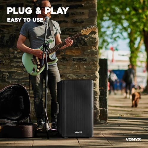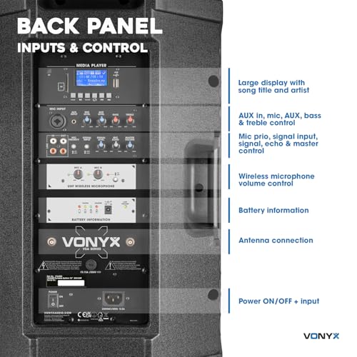 VONYX VSA700-BP 1000W Portable PA System with Microphones, Bluetooth, Adjustable Stand, and Protective Case – Ideal Battery PA System for School Announcement System, Events, and Buskers