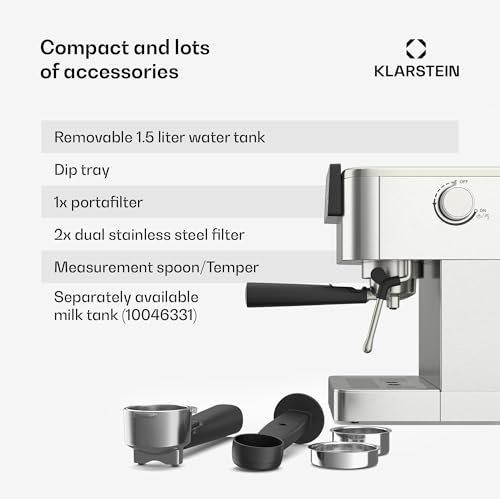 Klarstein SteelPresso Touch Espresso Machine 20 bar Coffee Maker 1.5 L 1350W
