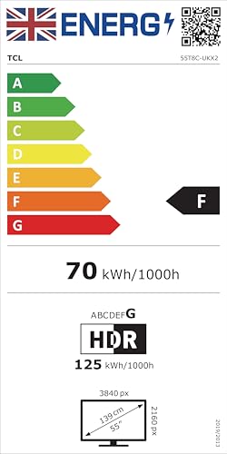 TCL 55T8C UK 55 4K HDR UHD Smart QLED TV Dolby Vision Dolby Atmos