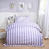 OHS Frill Duvet Cover Bedding Set Pillowcase Stripe Quilt Luxury in Lilac Size: Double Lilac Double