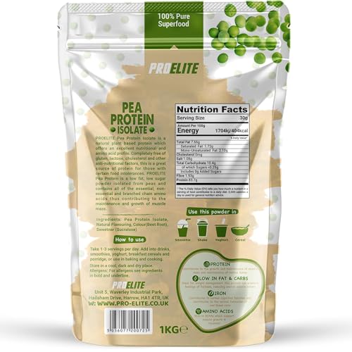 Pea Protein Isolate Powder 1kg Vegan 100% Plant Protein Gluten-Free, Vegetarian Protein Powder Shake for Superfood Super Greens Dairy Free Shakes by PROELITE (1KG, Strawberry)