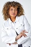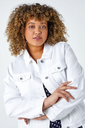 Roman Originals Jean Denim Jacket for Women UK Ladies 100% Cotton Summer Casual Stretch Crop Smart Utility Trucker Biker Fitted Vintage Wash Faded Classic Jeans Work Twill - White Plus - Size 22