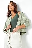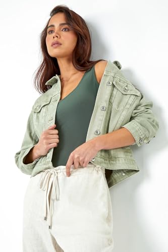 Roman Originals Jean Denim Jacket for Women UK Ladies 100% Cotton Summer Casual Stretch Crop Smart Utility Trucker Biker Fitted Vintage Wash Faded Classic Jeans Work Twill - Petite Sage - Size 16