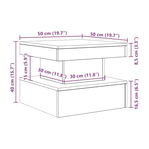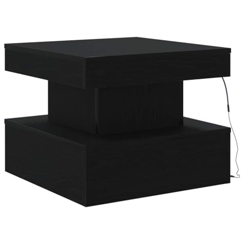 vidaXL modern black oak coffee table - LED lights side table - engineered wood 50x50x40 cm for living room/lounge