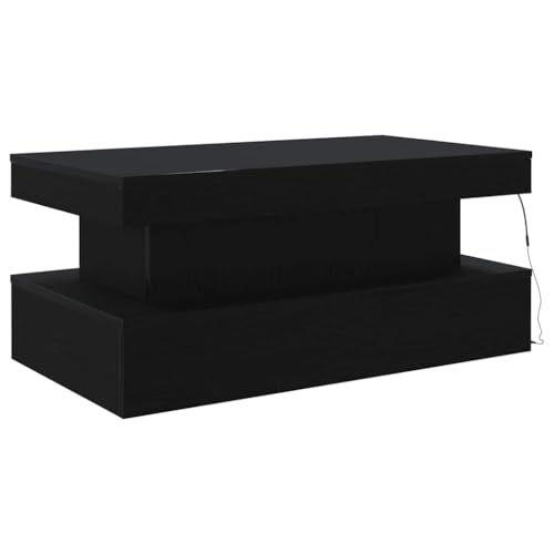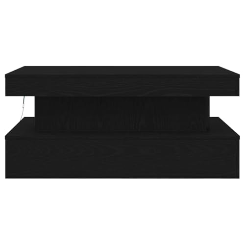 vidaXL coffee/couch/side table with led lights - black oak engineered wood, 90x50x40cm - living room/office/tea table - modern furniture