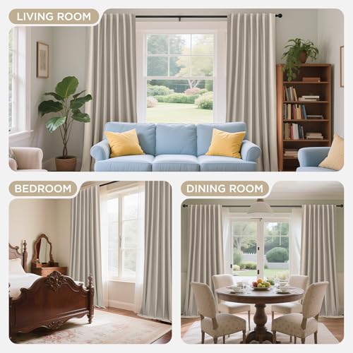 Joydeco Light Beige 100% Blackout Curtains 102 Inch 2 Panels, Luxury Thermal Light Beige Velvet Curtains for Bedroom Living Room, Soundproof Blackout Window Drapes, Rod Pocket & Back Tab (52W x 102L)