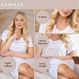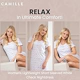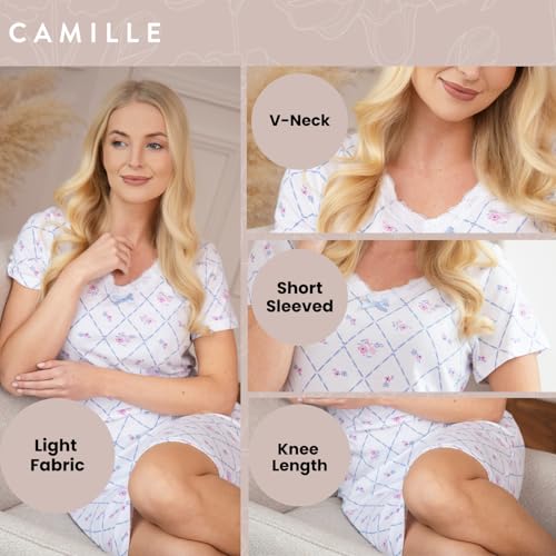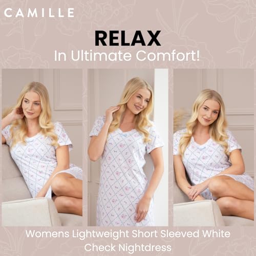 Camille Womens Nightdresses Smooth Soft 100% Cotton - Short Sleeved Breathable & Lightweight Summer Nighties - White Diamond - 14-16