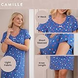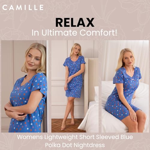 Camille Womens Nightdresses Smooth Soft 100% Cotton - Short Sleeved Breathable & Lightweight Summer Nighties - Blue Multi Spot - 10-12