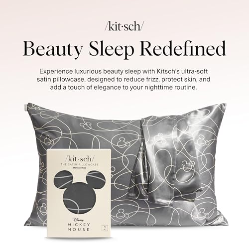 Kitsch Mickey/Minnie Satin Pillowcase with Zipper - Softer Than Silk Pillow Case for Hair & Skin Cooling | Standard Size (Mickey Maze, 1 Pack)