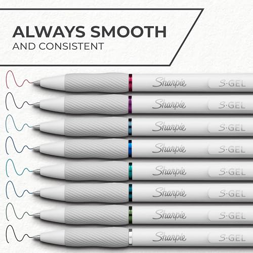 Sharpie S-Gel | Gel Pens for Writing | Medium Point (0.7mm) | Assorted Ink Colours | White Pearl Barrels | 8 Count