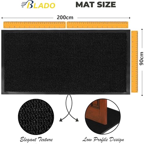 BLADO Washable Door Mats - Non-Slip Heavy Duty Doormats - Stylish Large Rubber Mat - Perfect Dust Grabbing Indoor & Outdoor (Black, 90cm x 200cm)