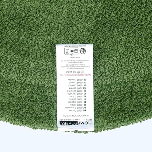 HOMESCAPES Round Bathroom Mat, Luxury 1600gsm Extra Soft 100% Cotton, Reversible Bath Mat Non-Slip, Washable, Super Absorbent, Quick-Dry, Fern Green Round Bathroom Rug, 80cm