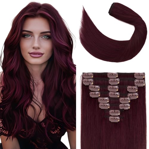 Elailite Clip in Hair Extensions Real Human Hair 8 Pieces Standard Weft Straight - #33 Dark Auburn - 18 Inch (100 g)