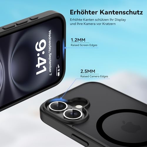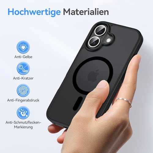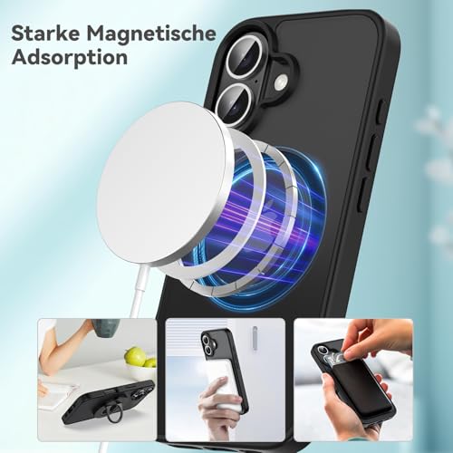 Natiiozie Magnetic Case Compatible with iPhone 16 [Compatible with MagSafe] Military Grade Shockproof Phone Case Anti-Scratch Slim Translucent Matte Case for iPhone 16 - Black