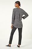 Roman Originals Shirt for Women UK Ladies Top Collarless Blouse Stretchy Tunic Smart Casual Autumn Winter Jersey 3/4 Length Sleeve Notch V Neck Flattering Office Work - Grey Ink - Size 10