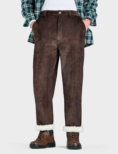 Pegasus Men's Sherpa Lined Cord Trousers with Stretch Waist – 8 Wale Cord, Button & Zip Fly Thermal Trousers Brown 36W / 31L