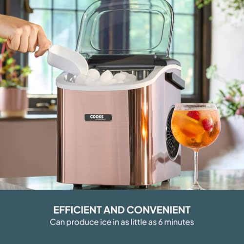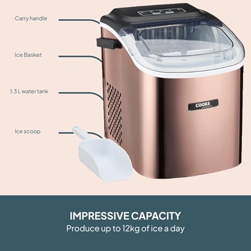 Cooks Professional 12KG Ice Maker Machine with Scoop | Countertop Ice Cube Maker for Home, Kitchen, Bar | Large Capacity 1.3L Water Tank | Quick & Easy with 2 Ice Size Options | No Plumbing | Copper