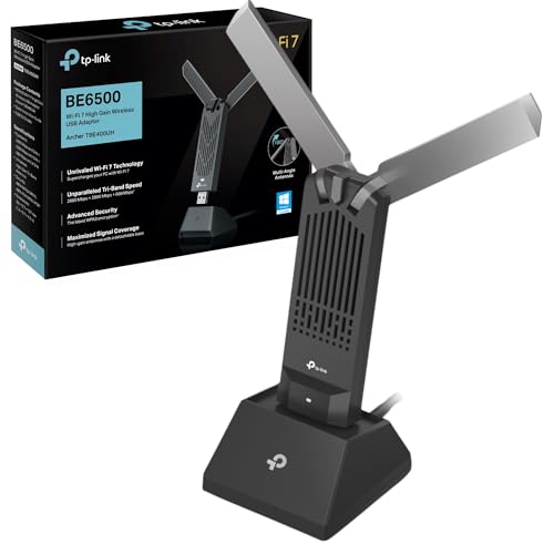 TP-Link Archer TBE400UH BE6500 WiFi 7 Dongle High Gain USB WiFi Adapter for PC, High-Gain Antenna, Tri-Band, MLO, WiFi Dongle for PC, USB WiFi Dongle 3.0, Win, OFDMA, MU-MIMO, Plug&Play, Flexible