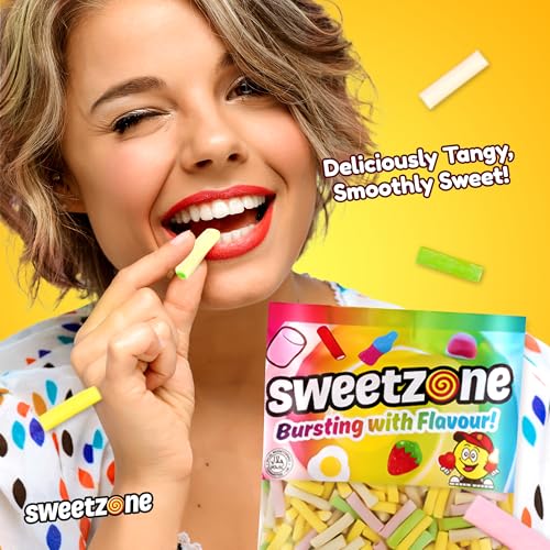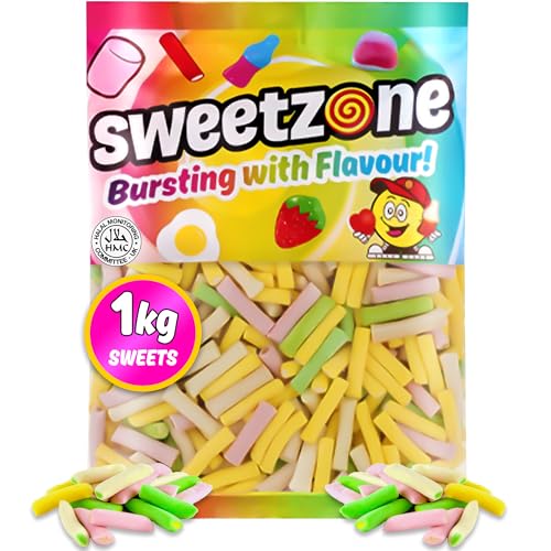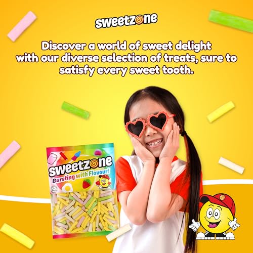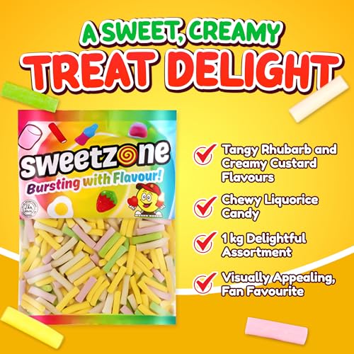 Sweetzone Rhubarb and Custard Pencils 1kg, Delicious Rhubarb and Custard Sweets, Sugar Sticks, Candy Pencils in a Sweet Tub, Bulk Sweets, Perfect Box of Sweet for Kids