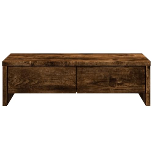 vidaXL Monitor Stand with Drawers - Smoked Oak Engineered Wood - Dual Monitor Riser - 50x27x15 cm - Max Load 25kg - Stable & Durable