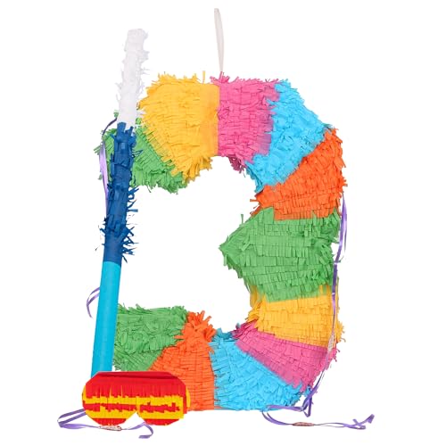 Fax Potato Number 8 Pinata Set with Stick & Blindfold - Blue Stick, Multi