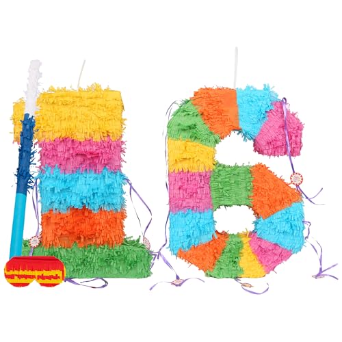 Fax Potato Number 8 Pinata Set with Stick & Blindfold - Blue Stick - Mexican Kids Girls Boys Birthday Large Party Parties Games Decorations Kit
