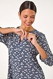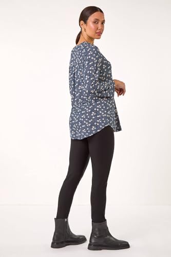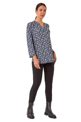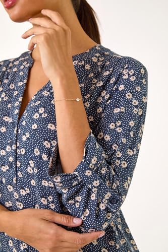 Roman Womens Stretch Ditsy Floral Buttoned Top in Blue | Size: 14
