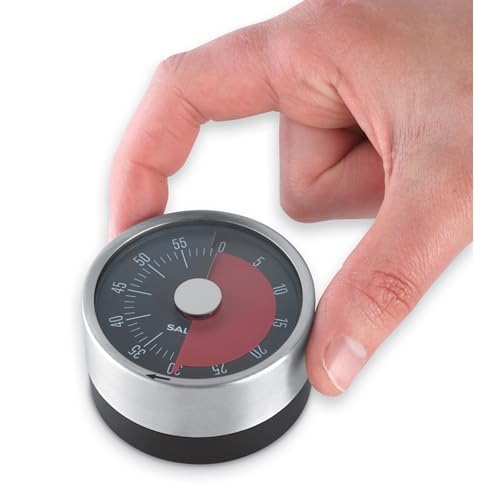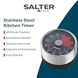 Salter Magnetic Mechanical Kitchen Timer – Magnetic Base, Attach To Ovens & Fridges, 60- Minute Countdown Makers, No Batteries Needed, Stainless Steel, Perfect for Baking & Cooking, SA00626FEU7