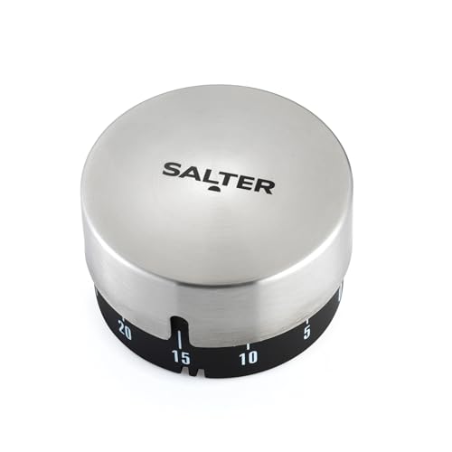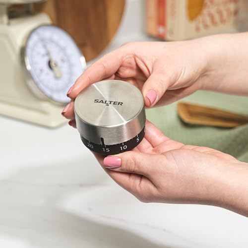 Salter Mechanical Kitchen Timer – 60- Minute Countdown Makers, Twist To Set, Loud Alarm, No Batteries Needed, Stainless Steel, Perfect for Baking & Cooking