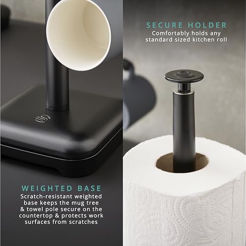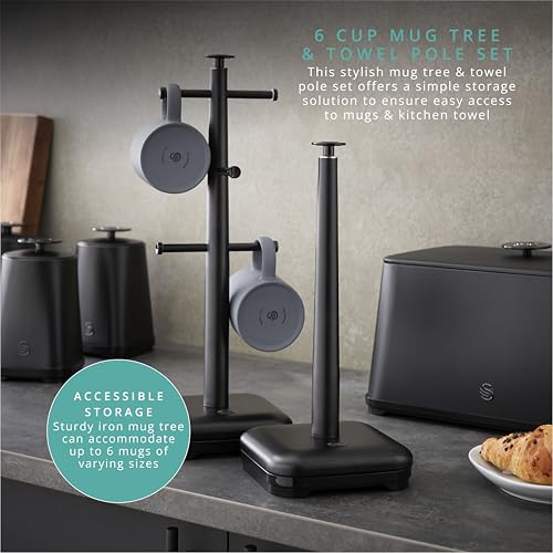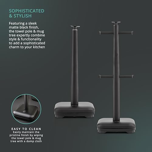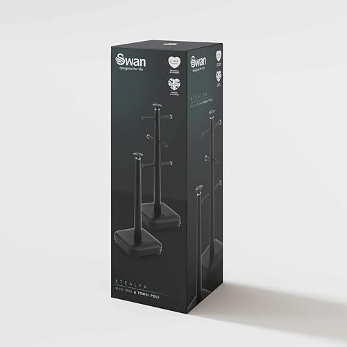 Swan Stealth Kitchen Towel Pole and 6 Cup Mug Tree, Weighted Base, One Size, Black